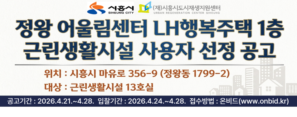 - [공고] 정왕 어울림센터 LH행복주택 1층 근린생활시설 사용자 선정 2026.04.08