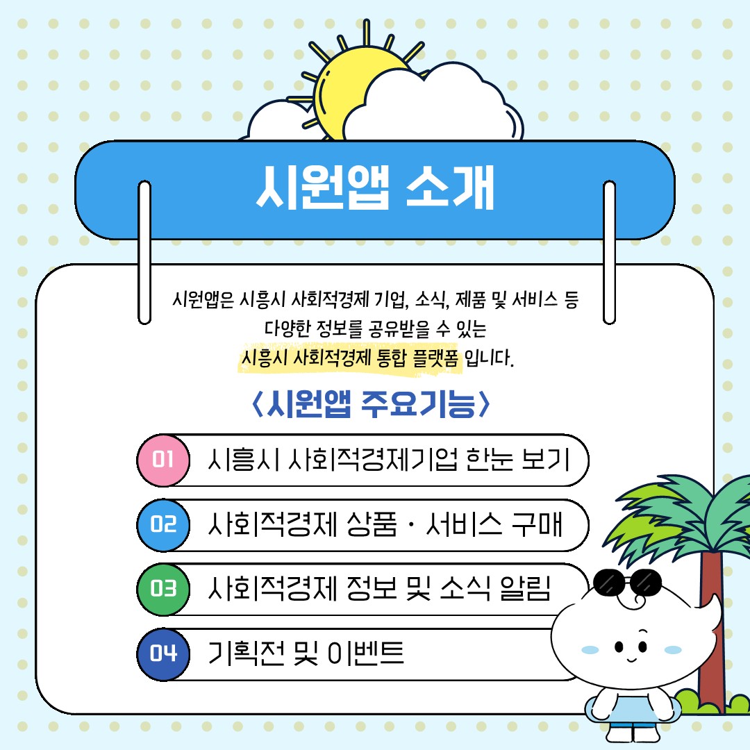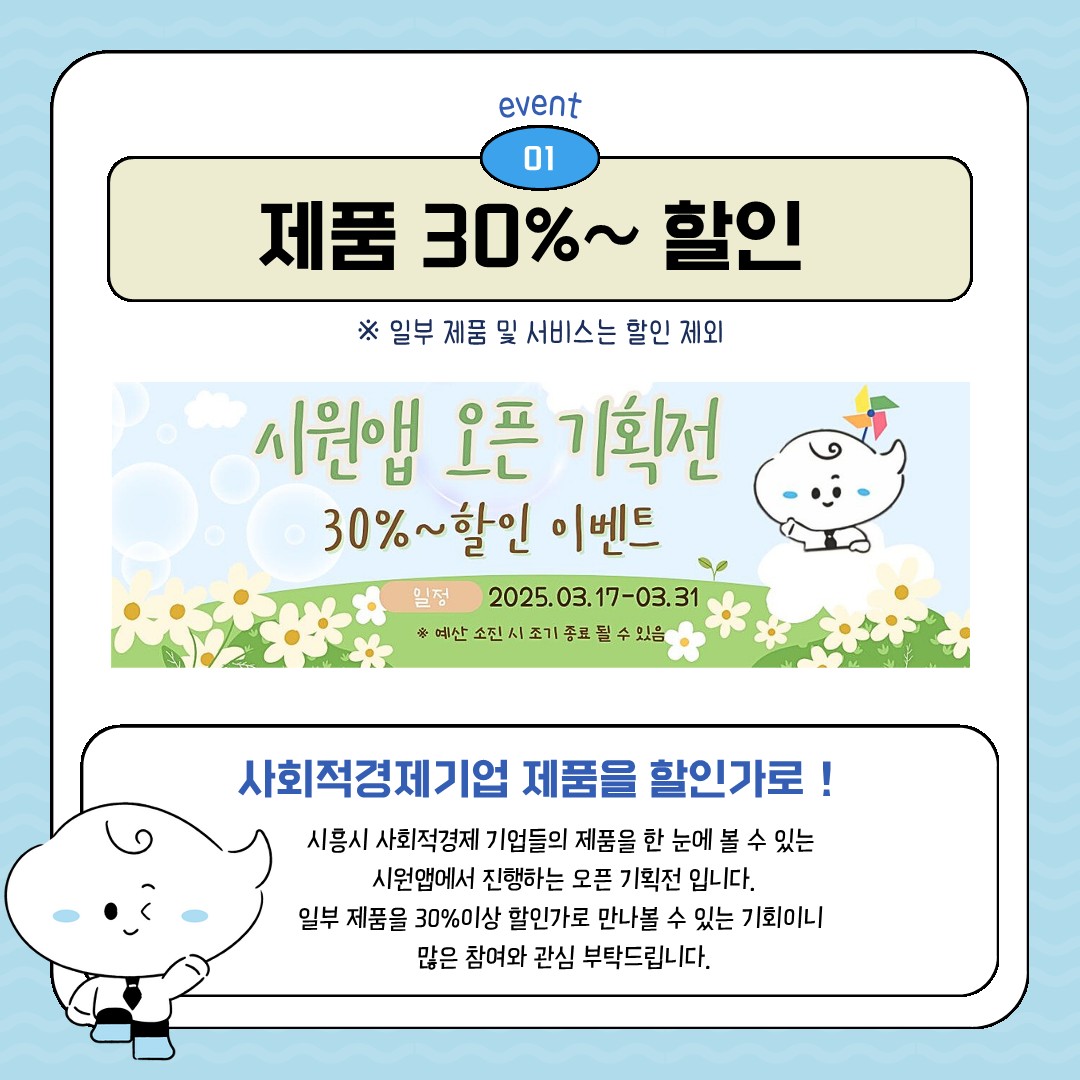 시원앱(시흥시 사회적경제 통합 플랫폼) 오픈기획전 시원앱(시흥시 사회적경제 통합 플랫폼) 오픈기획전 본문내용 작성자 : 시흥시도시재생지원센터 작성일 : 2025.03.19 조회 : 754 첨부파일 목록 첨부파일 목록